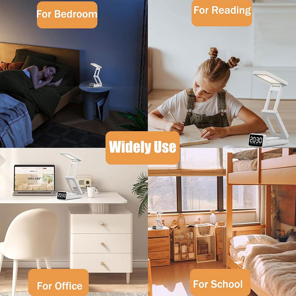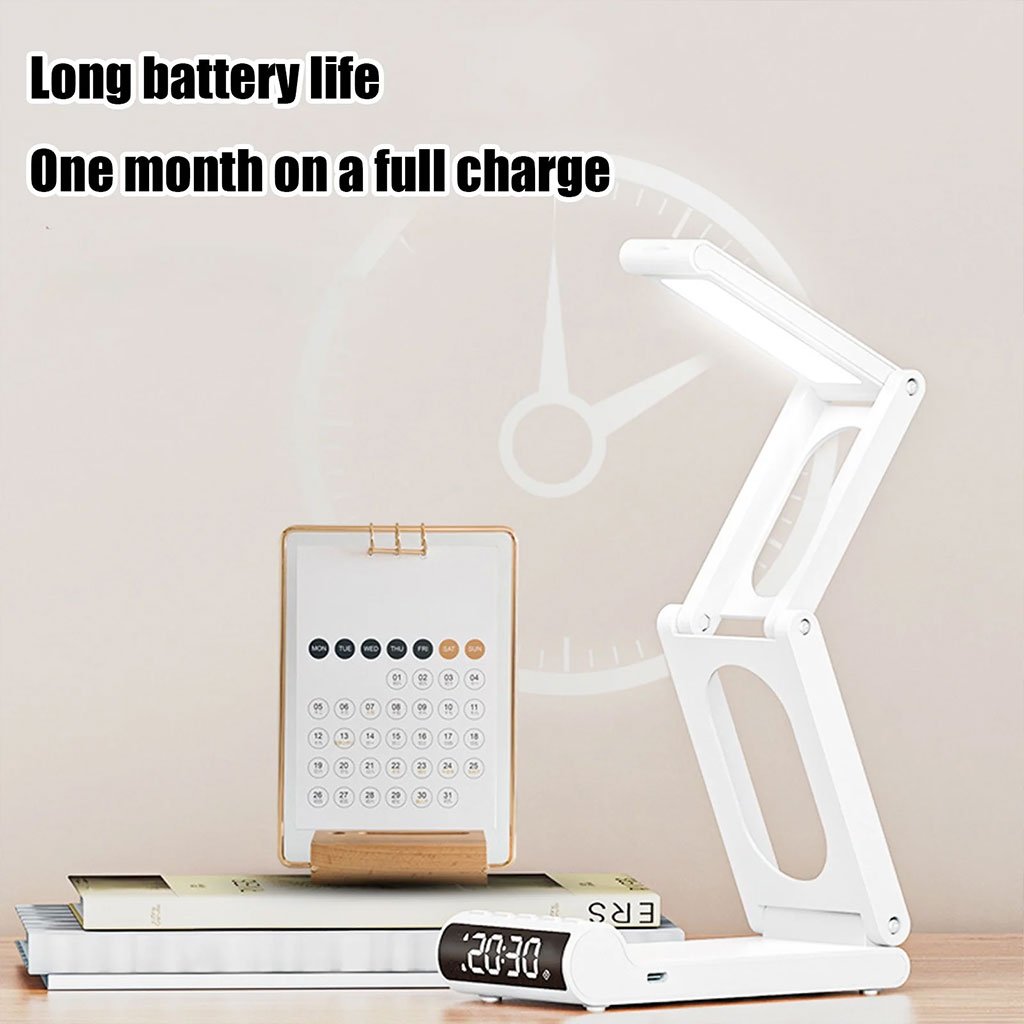 مصباح مكتبي لاسلكي قابل لإعادة الشحن مزود بساعة منبه