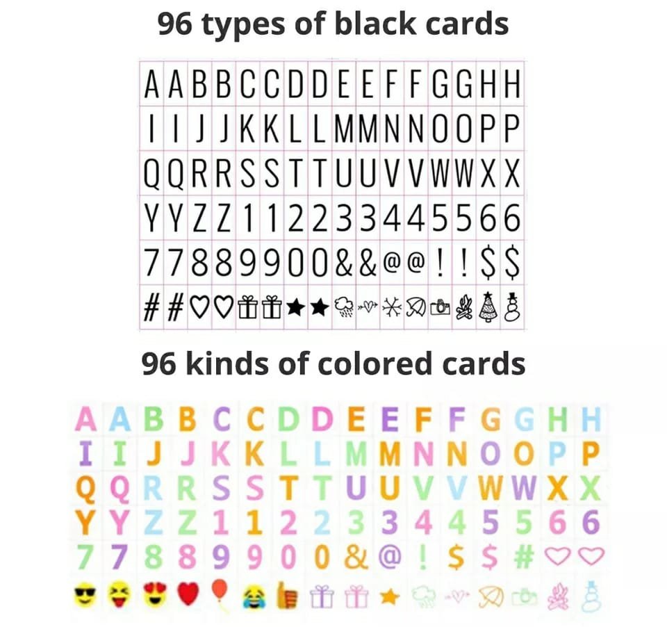 • عدد الأحرف والرموز: 96 قطعة (لون أسود)