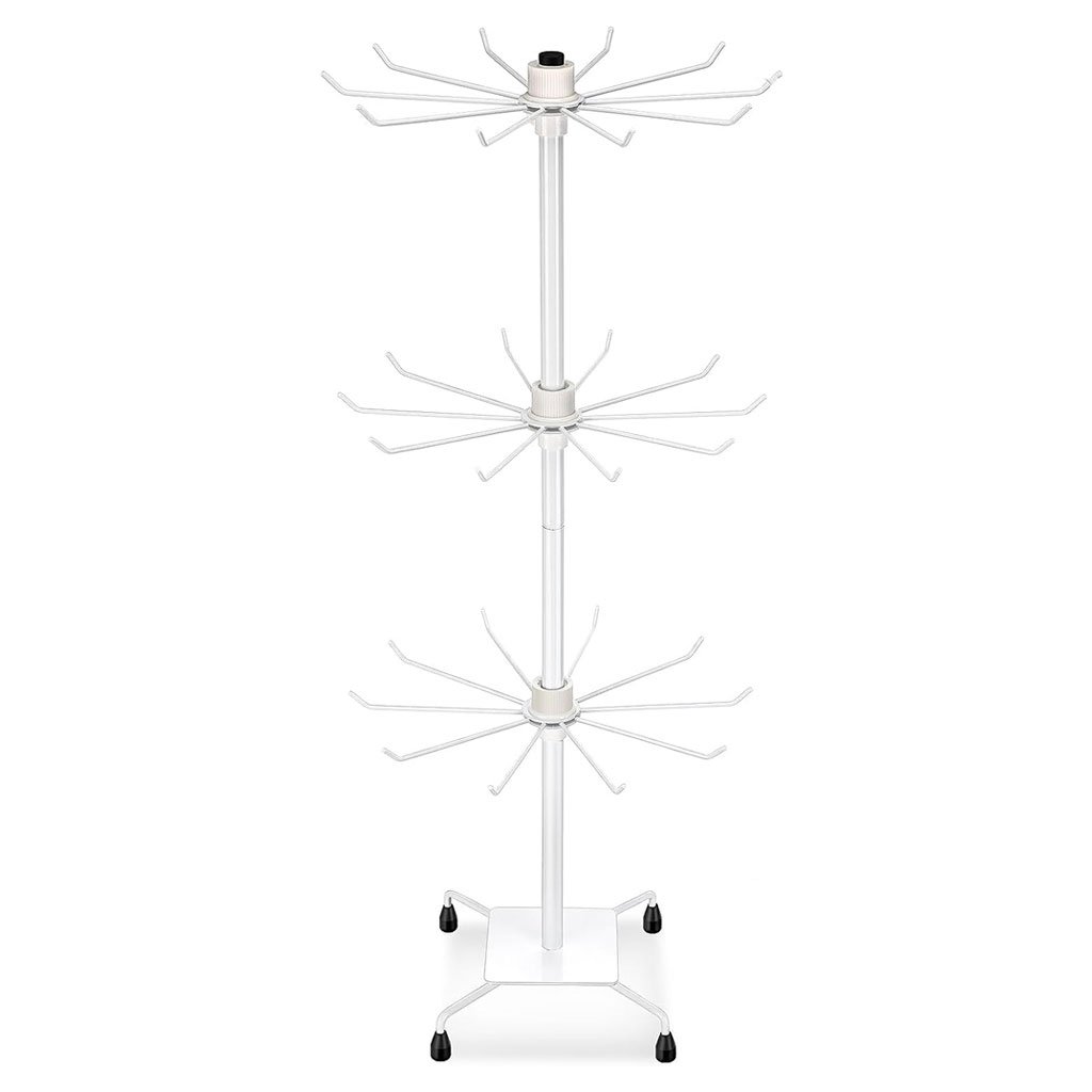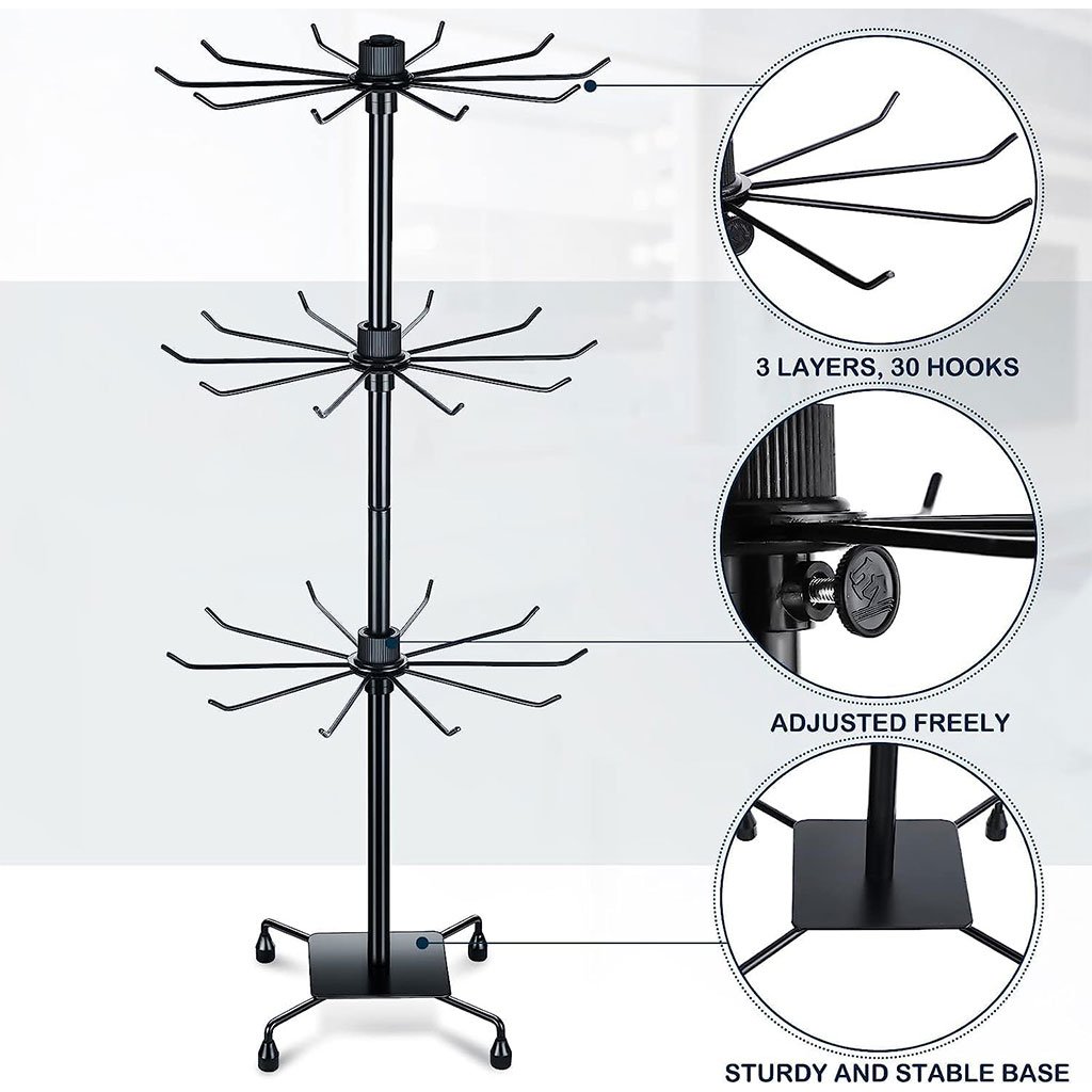 Design unique : Ce présentoir à bijoux à 3 niveaux est doté de 10 crochets rotatifs à 360 degrés, idéal pour suspendre boucles d’oreilles, bracelets, colliers et autres bijoux. Polyvalent et réglable, il s’adapte à différents types de bijoux et est équipé de crochets et de cintres pour une organisation facile. Haute qualité : Fabriqué en métal robuste, cet arbre à colliers rotatif est léger et portable, idéal pour les voyages. La plaque de base est résistante à la rouille et traitée par pulvérisation pour une durabilité accrue. Sa structure métallique robuste peut supporter plusieurs bijoux, facilitant ainsi son nettoyage et son entretien. Facile à monter : Ce présentoir à bijoux s’assemble facilement et rapidement. Vous pouvez le ranger dans des tiroirs, des placards ou d’autres petits espaces lorsqu’il n’est pas utilisé. Doté d’une base rotative fixe et fluide, il permet un accès facile à vos articles sous tous les angles et met en valeur vos bijoux et accessoires. Dimensions sur les photos