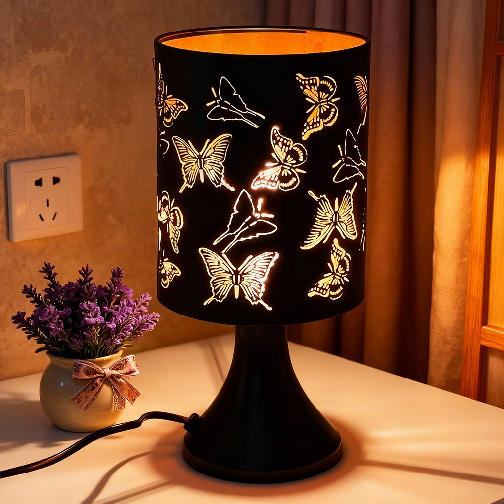 Ajoutez une touche poétique à votre intérieur avec cette lampe de table décorative , dotée d’un abat-jour noir ajouré de papillons . Une fois allumée, la lumière chaude traverse les découpes, projetant des ombres artistiques sur les murs et la surface environnante, créant une ambiance douce et apaisante. Caractéristiques principales : Abat-jour noir ajouré : motif papillons lumineux Effet d’ombre artistique : ambiance visuelle unique Lumière chaude : idéale pour les soirées relaxantes Base stable : design épuré et élégant Utilisation intérieure : chambre, salon, bureau Dimensions : 26x13cm.