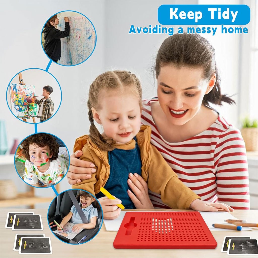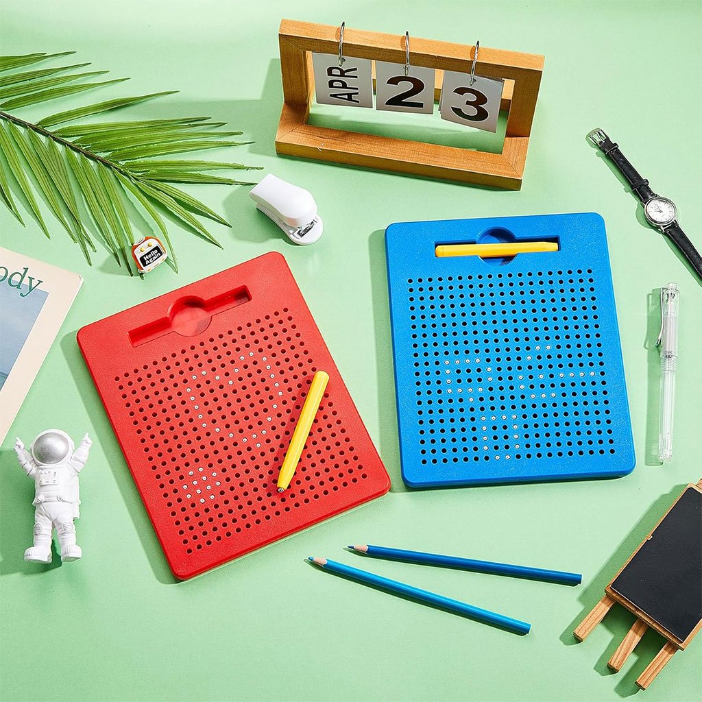 [Tableau Magnetique Enfant]: Les enfants dessinent et griffonnent sur les Planche À Dessin De Billes Magnétiques à l’aide du stylo magnétique fourni, sans gaspiller d’encre ni de papier, et peuvent être effacés et recréés à tout moment. Les cartes de dessin recto-verso de l’ensemble fournissent une référence pour le dessin des enfants. [Compact et Portable]: Le Tablette Magnetique mesure 21,5 x 17,5 x 1,2 cm, une taille facile à tenir par les enfants pour dessiner et effacer, et parfaite pour être rangée dans leur bureau ou leur sac, ce qui leur permet d’utiliser le tableau à tout moment à la maison, en classe ou en voyage. [Facile à Utiliser]: Utilisez le stylo magnétique pour dessiner le motif en attirant les perles sur la surface du Tableau Dessin Enfant, de sorte que les perles sont collées dans les trous du panneau pour pouvoir dessiner des motifs, et poussez doucement la perle avec le côté du stylo ou le doigt pour qu’elle revienne sur le tableau. [Utilisation Assurée]: Le Tablette Magnétique Enfant est fabriqué à partir de plastique fiable et de billes d’acier, qui ne nuiront pas à la santé de votre enfant. Les vis sont fermement fixées, durables et résistantes aux chutes ; les billes sont fixées à l’intérieur du tableau et ne tomberont pas, de sorte que les enfants peuvent jouer en toute confiance. [Jouet D’apprentissage Précoce]: Le Tablette Magnetique Enfant est un jouet d’apprentissage parfait pour les enfants qui peuvent utiliser leur imagination pour créer tout en exerçant leur motricité fine et leur coordination oculo-manuelle. Les enfants peuvent également jouer avec leurs parents pour améliorer leurs capacités d’interaction et de communication.
