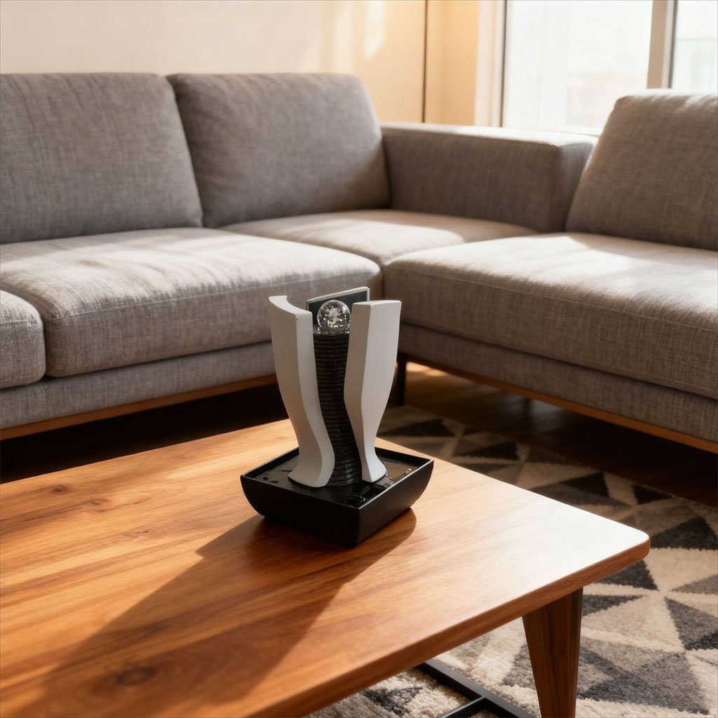 Cette fontaine est conçue pour offrir un confort visuel et auditif sans nécessiter d’entretien compliqué. Grâce à son rétroéclairage LED, le mouvement de l’eau et des pierres se détache, et vous pouvez les agencer à votre guise. Elle est idéale pour se détendre, apaiser son esprit ou créer une ambiance agréable pour travailler. Ses dimensions discrètes lui permettent de s’intégrer même dans les petits espaces et d’apporter une touche d’élégance à tout intérieur. fontaine décorative avec effet lumineux le bruit apaisant de l’eau qui coule Galets de rivière naturels inclus, à disposer à votre convenance. chargement via câble USB Fonctionnement silencieux, convient aux chambres ou aux bureaux destiné à un usage intérieur uniquement Dimensions : hauteur 28 cm, largeur 21 cm Le forfait comprend : Fontaine LED avec piédestal sac de galets de rivière naturels câble de chargement