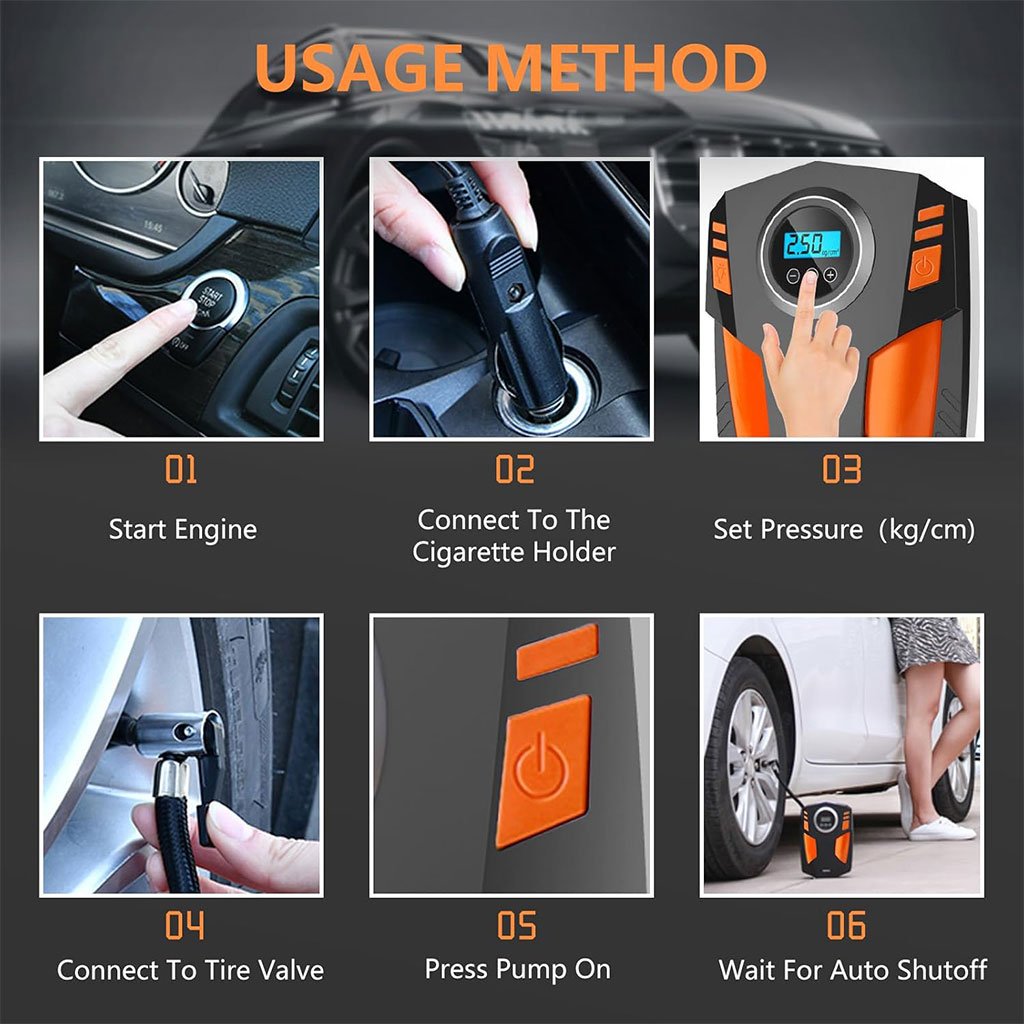 Affichage LED numérique-Ce gonfleur d’air de pneu dispose d’un affichage LED numérique qui vous permet de lire la valeur de la pression des pneus clairement et avec précision. Vous pouvez vérifier les valeurs de pression des pneus à tout moment. Utilisation multiple et portable-En plus de gonfler la voiture, ce gonfleur peut également gonfler les pneus de vélo, les ballons de basket, les ballons de football, les jouets gonflables, le canoë, etc. Le design compact et léger prend peu de place et vous pouvez le garder dans votre coffre. C’est un excellent outil à emporter avec vos visites en voiture, plus besoin de s’inquiéter des fuites. Facile à utiliser-branchez-le directement dans votre prise 12V DC (allume-cig–are), que vous soyez à la maison ou en déplacement, vous pouvez facilement effectuer l’entretien des pneus. Ensuite, lisez et réglez la pression avec lecture numérique et commencez à pomper, il s’éteindra automatiquement tout en atteignant la pression préréglée. Refroidissement rapide-Plug and play, le gonfleur de pneu numérique prend 3-5 minutes pour remplir un pneu de taille standard, assez silencieux, avec un radiateur de chaleur plus grand, et ne sera pas trop chaud après le gonflage (remarque: après avoir préréglé la pression, l’affichage clignote pendant trois secondes, Puis appuyez sur le commutateur pour démarrer la pompe de pneu de voiture) Lumière LED d’urgence-Le compresseur d’air numérique du gonfleur de pneu est équipé d’une lumière LED pour éviter les accidents de la route dus aux problèmes de pression des pneus. Il peut également être utilisé comme une lampe de poche, de sorte que vous pouvez trouver la valve de votre pneu dans un environnement de faible luminosité ou sombre. Spécification: Nom du produit: pompe à air de voiture Modèle de produit: Pompe à air de véhicule Modèle de base Modèle d’affichage numérique Taille du produit: environ 14.5*6*20.5cm Matériau du produit: ABS Poids brut du produit: environ 800g Longueur du cordon d’alimentation: environ 300cm, longueur du tuyau d’air environ 50cm Emballage du produit: papier kraft Taille d’emballage 220*158*88mm Puissance de sortie: 120 (W) Tension nominale: DC12 (V) Éclairage: LED