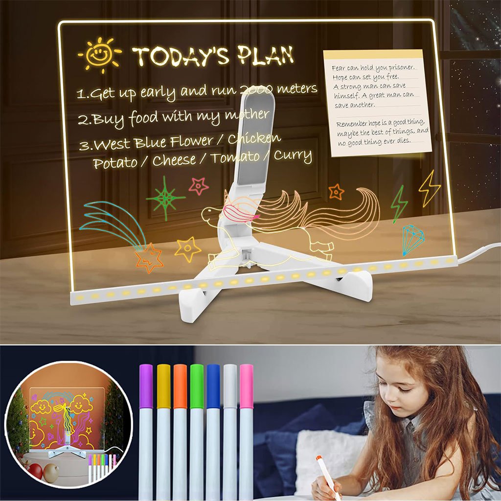 لوحة مذكرات مضيئة بتقنية مع قلم بسبعة ألوان وحامل