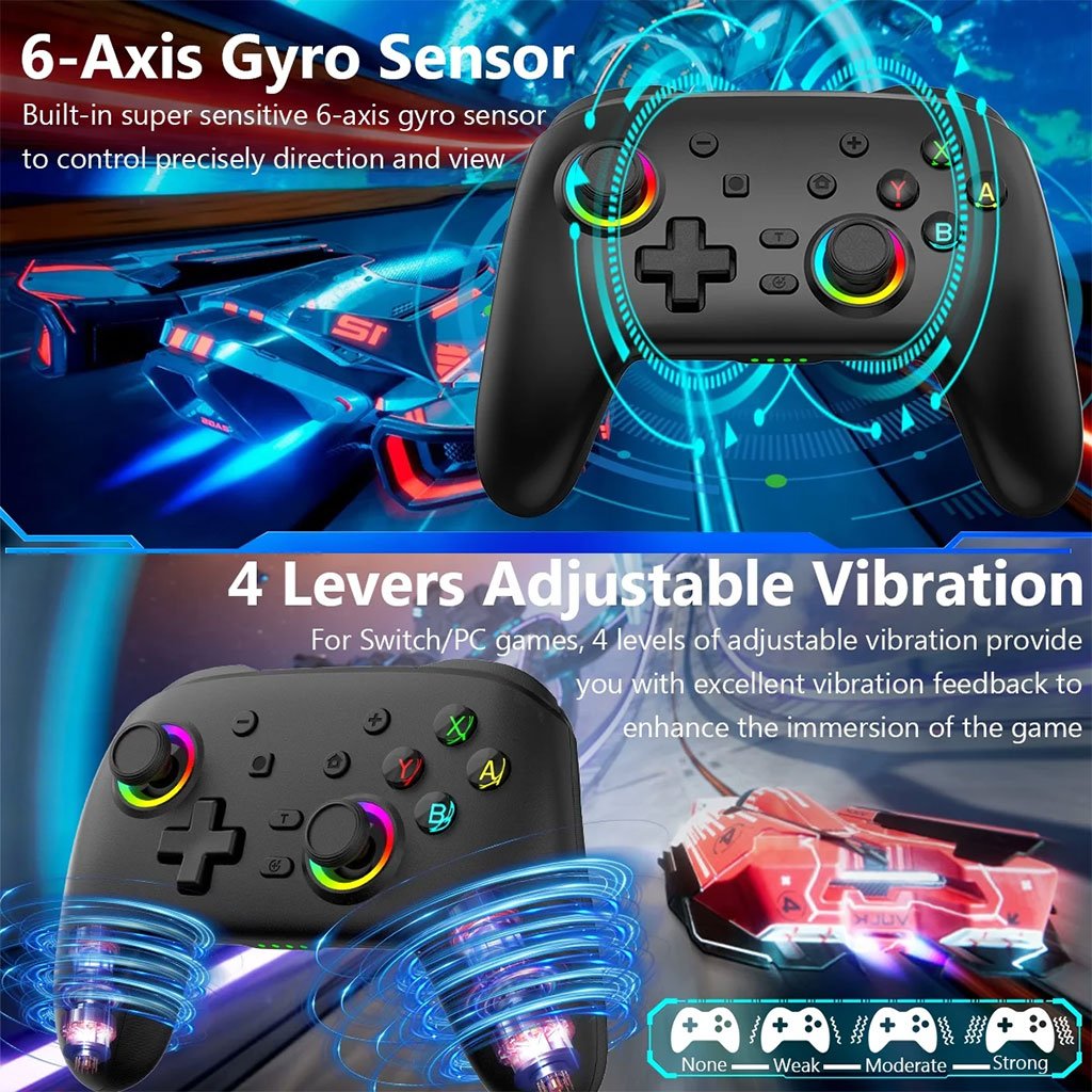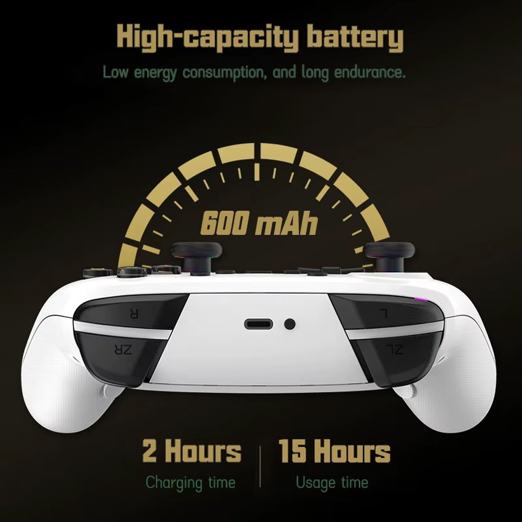 Manette de jeu Switch – compatible avec plusieurs plateformes. 1. La manette est compatible avec la console Switch, les PC, les téléviseurs, Android (mode ShotingPlus V3 et mode standard HID) et divers jeux. Elle est également compatible avec les appareils iOS, les téléphones portables, les jeux MFi et les consoles PS3/PS4. 2. Prise en charge des paramètres de macro d’extension arrière (jusqu’à douze touches peuvent être configurées). 3. Prise en charge du réglage de l’intensité des vibrations Mazda, avec un total de quatre modes. 4. Prise en charge des fonctions Turbo et Auto Burst