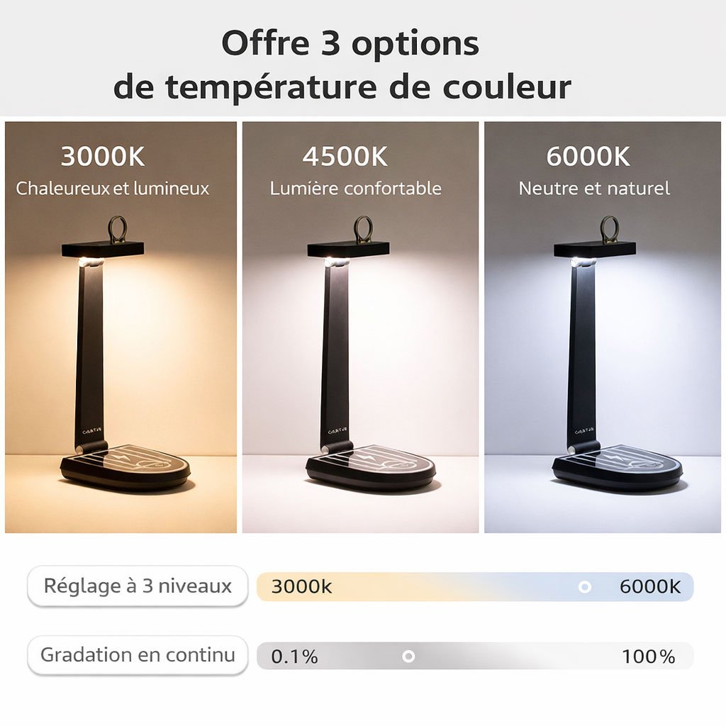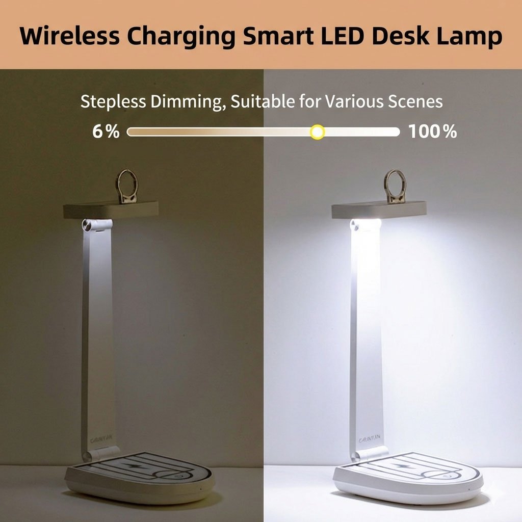 مصباح مكتبي لاسلكي بقوة 15 واط وشاحن للهاتف المحمول