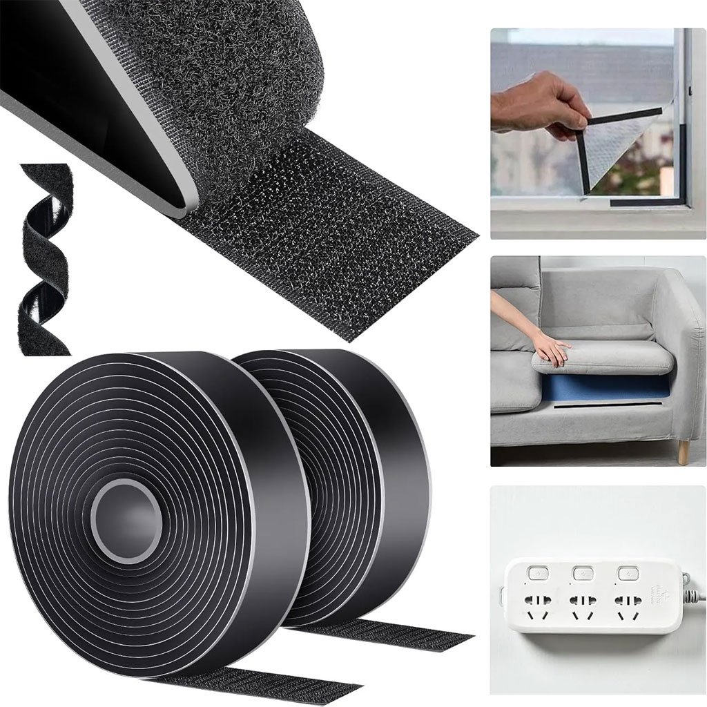 شريط فيلكرو أسود مزدوج الجوانب 200 سم × 2