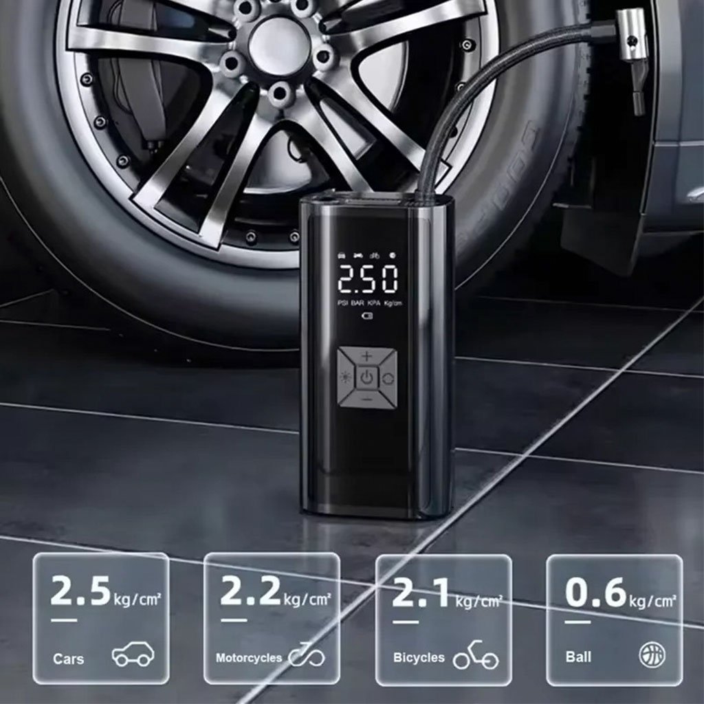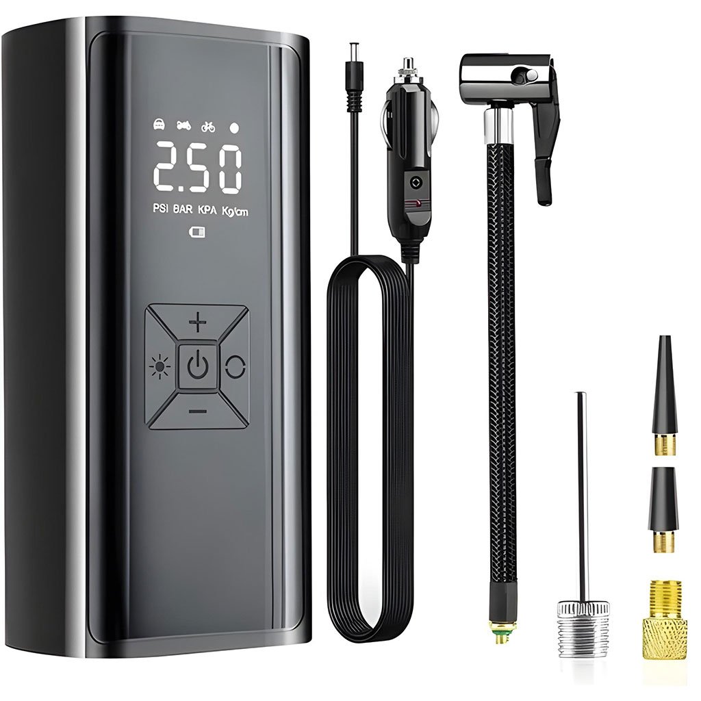 Caractéristiques principales Performance et Rapidité : Capable de fournir une pression maximale de 150 PSI avec un débit d’air de 30L/min, permettant de gonfler vos pneus en seulement 60 secondes. Moteur Robuste en Cuivre : Doté d’un moteur en cuivre durable et d’un bloc-cylindre en métal pour une longévité et une efficacité thermique supérieures. Affichage Digital et Précision : Équipé d’un écran numérique permettant de vérifier la pression des pneus en temps réel pour un gonflage précis et sécurisé. Pratique et Universel : Livré avec un connecteur rapide et un cordon d’alimentation de 3 mètres pour atteindre facilement toutes les roues de votre véhicule. Spécifications Techniques Caractéristique Détails Tension Nominale DC 12V Puissance 120W Pression Maximale 150 PSI Débit d’air 30L/min Longueur du câble 3.0 mètres Type d’affichage Numérique (Filaire)