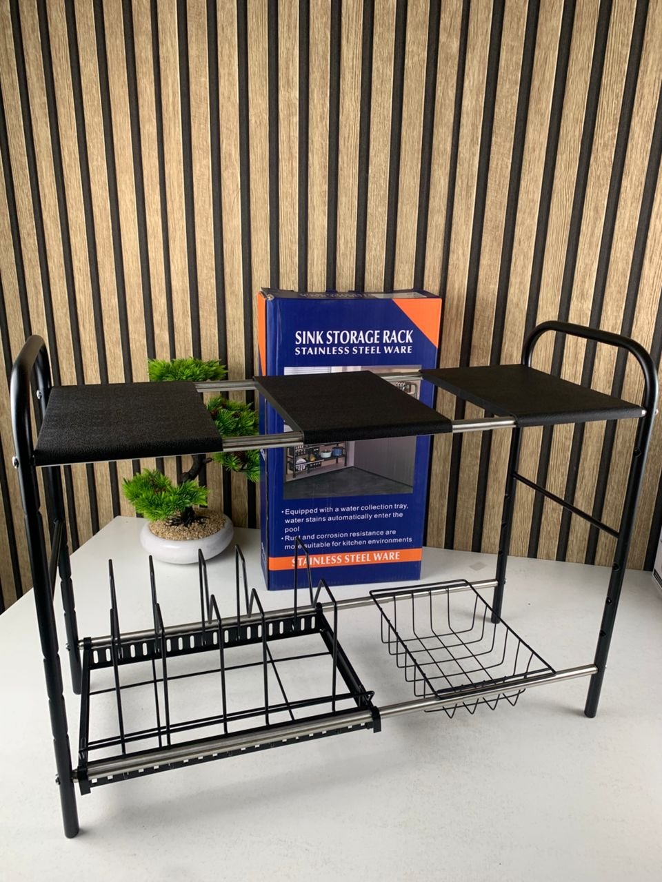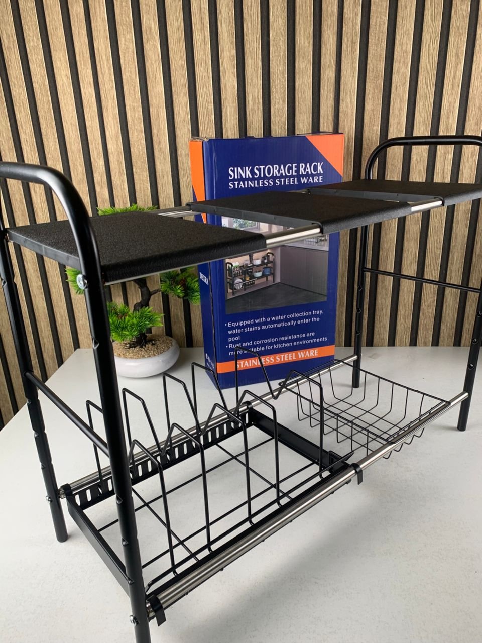 رف تخزين قابل للتوسيع والتعديل، الحل المثالي لفوضى أسفل الحوض والمطابخ الصغيرة 🖤
