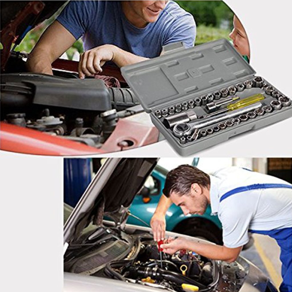 Caractéristiques: Il adopte un matériau authentique en acier au carbone avec traitement de surface miroir, durable et résistant à la corrosion. Clé à cliquet réversible à dégagement rapide, tourner à droite pour verrouiller et tourner à gauche pour démonter. Il peut être utilisé pour retirer l’accélérateur, la chaise de siège, le verrou de porte de voiture, le levier et enlever les vis et les écrous de différentes formes. Livré avec un étui à outils en plastique robuste pour le stockage et le transport. Convient pour la réparation et l’entretien de la voiture, de la moto et du vélo. Spécifications: Matériau: PP + acier au carbone Longueur de la clé à cliquet: 170mm / 6.69in Longueur de la poignée du Spinner: 140mm/5,51in Poids de l’article: 1050g / 37.04oz Poids du colis: 1200g / 42.32oz Taille de l’emballage: 24*12.5*4cm / 9.45*4.72*1.57in Liste de colisage: Poignée à cliquet réversible à prise 3/8″ 14 douilles 1/4″ à prise métrique : 4, 4,5, 5, 5,5, 6, 6,5, 7, 7,5, 8, 9, 10, 11, 12, 13 mm. 14 douilles 1/4″ dr.SAE taille : 5/32, 3/16, 7/32, 1/4, 9/32, 5/16, 11/32, 3/8, 13/32, 7/16 , 15/32, 1/2, 17/32, 9/16. 3 douilles Dr.SAE 1/4″ (8 points) : 1/4, 5/16, 3/8. Barre d’extension 3/8″ dr.3″. Adaptateur 1/4″ (m)x3/8″(f). 1 étui de soufflage. 1 disque rotatif. Prises dr. 3/8″ métriques : 15 mm, 16 mm. Douilles dr.sae 3/8″ : 19/32, 5/8.