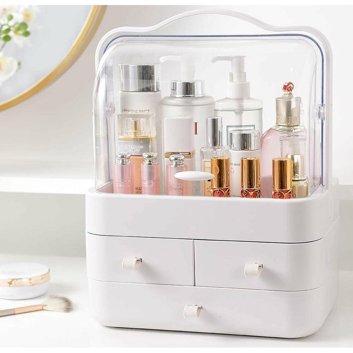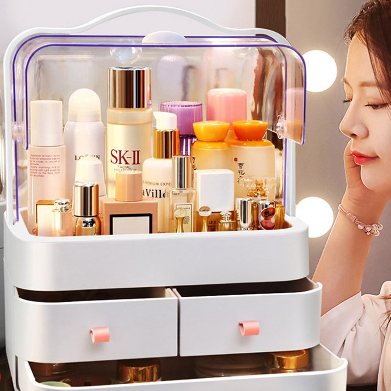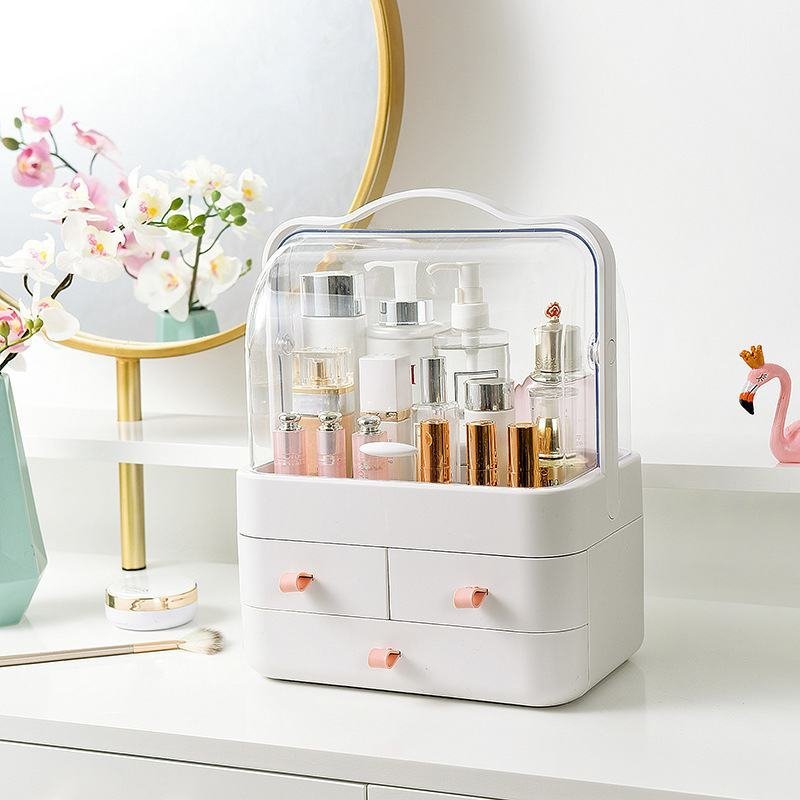 صندوق تخزين المكياج ومستحضرات التجميل بثلاثة أدراج