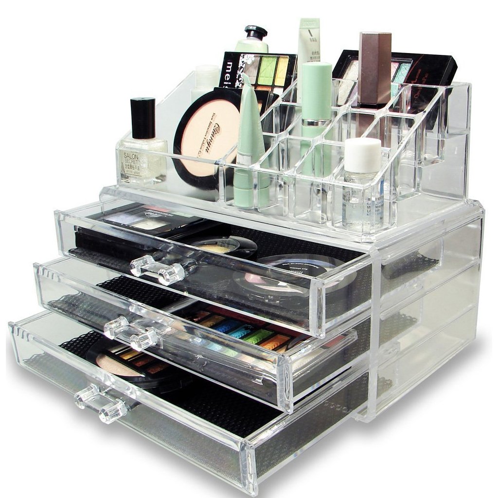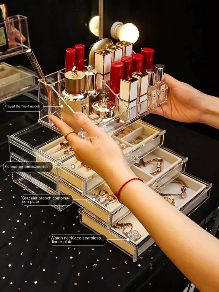 صندوق تخزين مكياج من الأكريليك بثلاثة أدراج