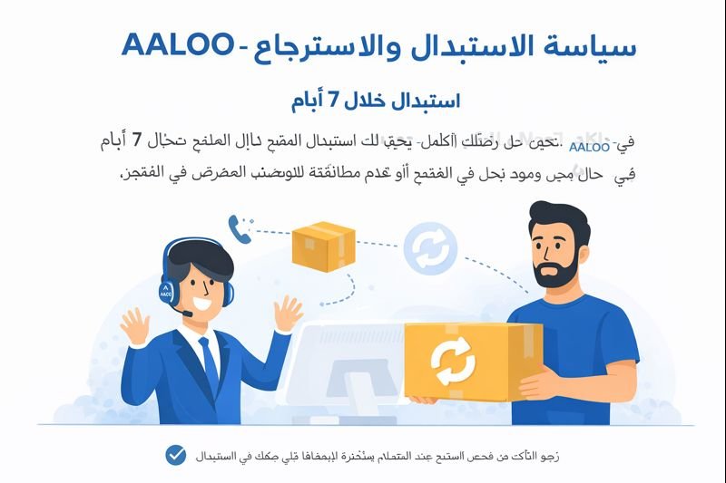 في AALOO نحرص على رضاك الكامل. يحق لك استبدال المنتج خلال 7 أيام من تاريخ الاستلام في حال وجود خلل في المنتج أو عدم مطابقته للوصف المعروض في المتجر.